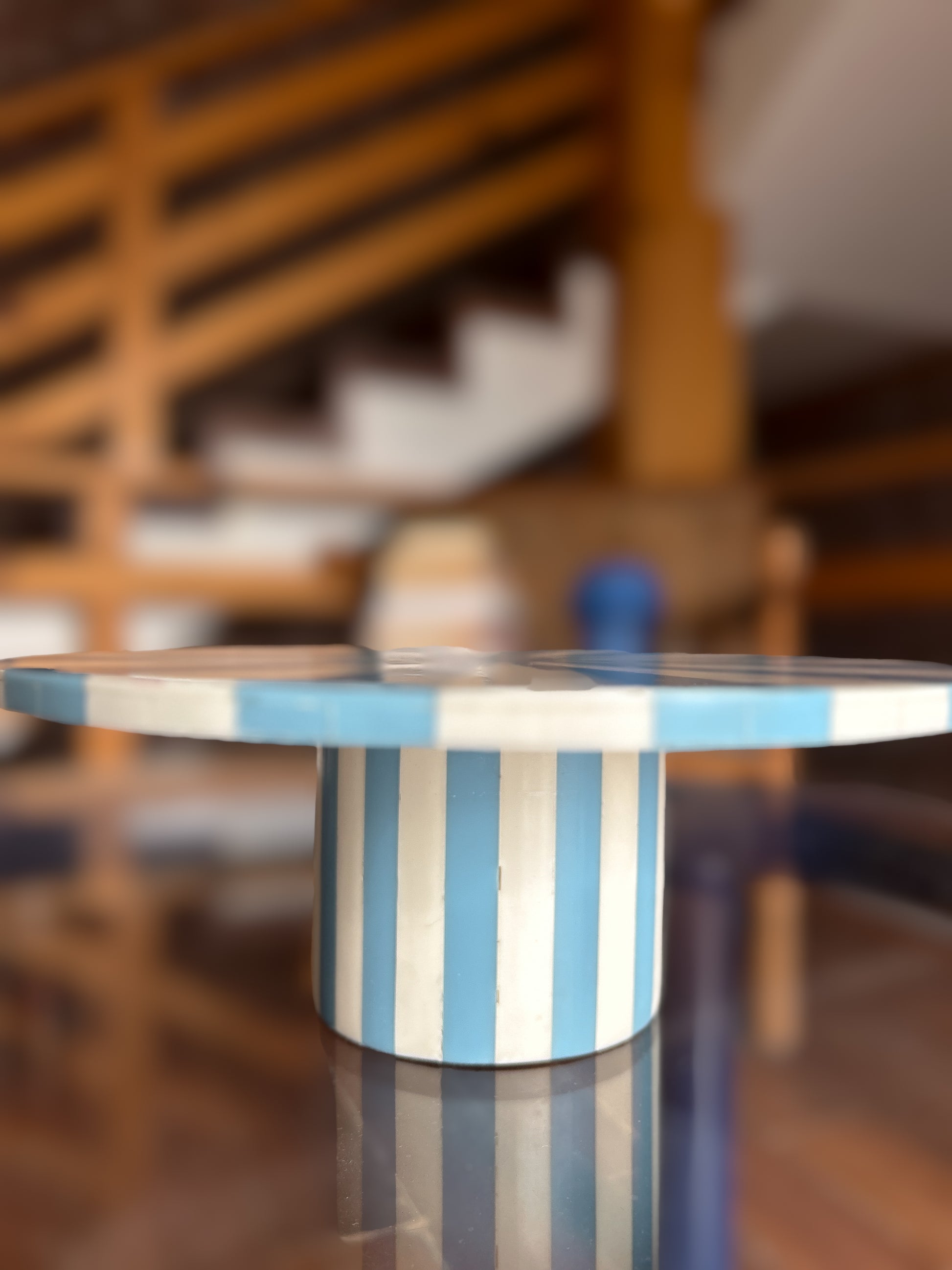Step right up to the sweetest act under the big top. These lightweight cake stands feature playful circus-inspired stripes crafted with colourful resin inlay, bringing a sense of spectacle to every table. Perfect for serving cakes, pastries, or afternoon tea—and just as charming styled on a console—because after all, serving (and styling) is a juggling act.